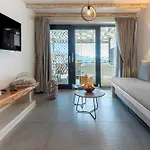 Aelia Suites 아파트에 개별 냉난방 제어, Wi-Fi, 찬장 있는 방이 있습니다. 필로우탑 매트리스, 저자극성 베개, 깃털 베개 있는 침대는 고객님의 편의를 위해 준비되어 있습니다. 욕실에는 워크인 샤워, 비데 있습니다.